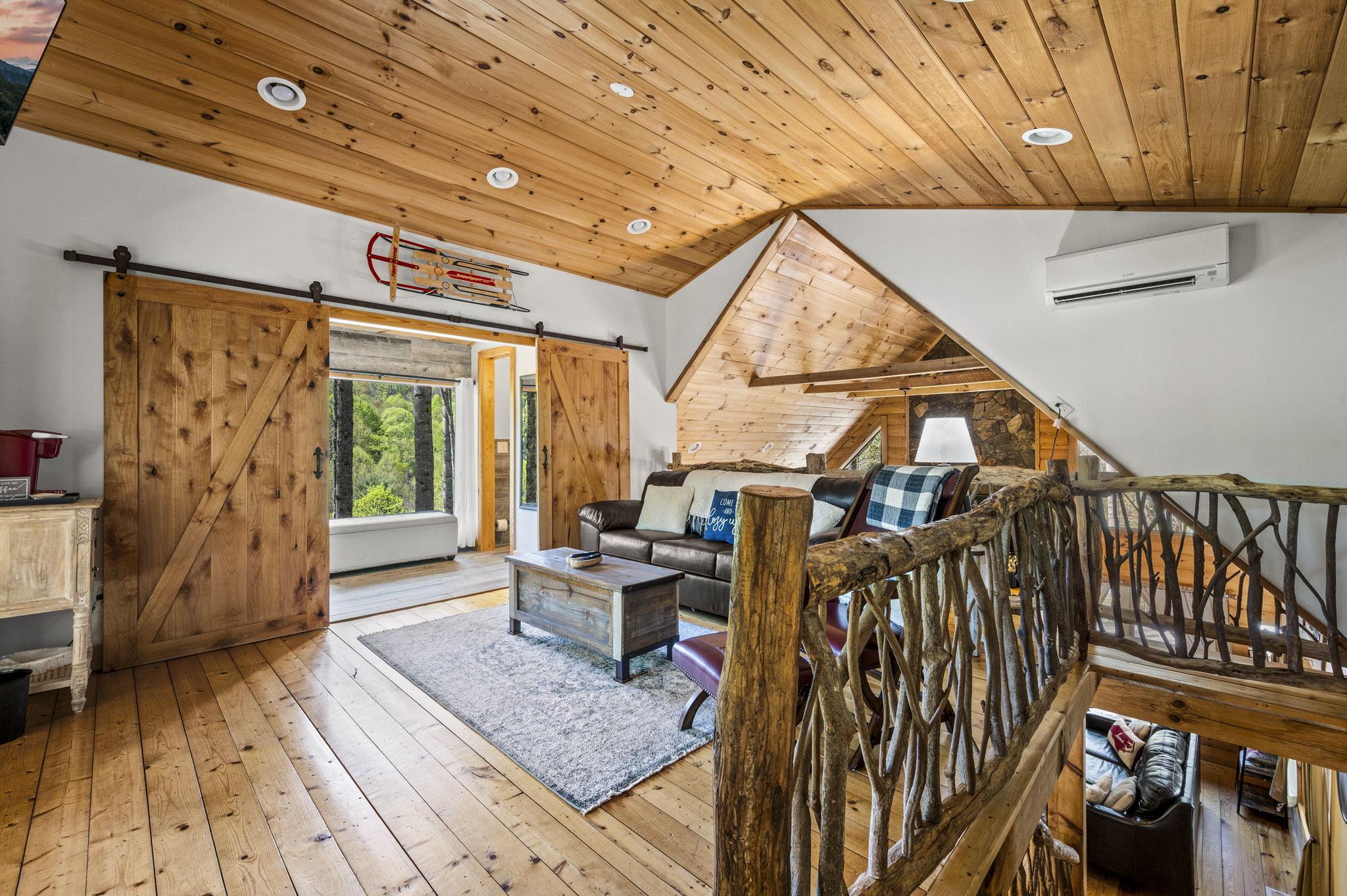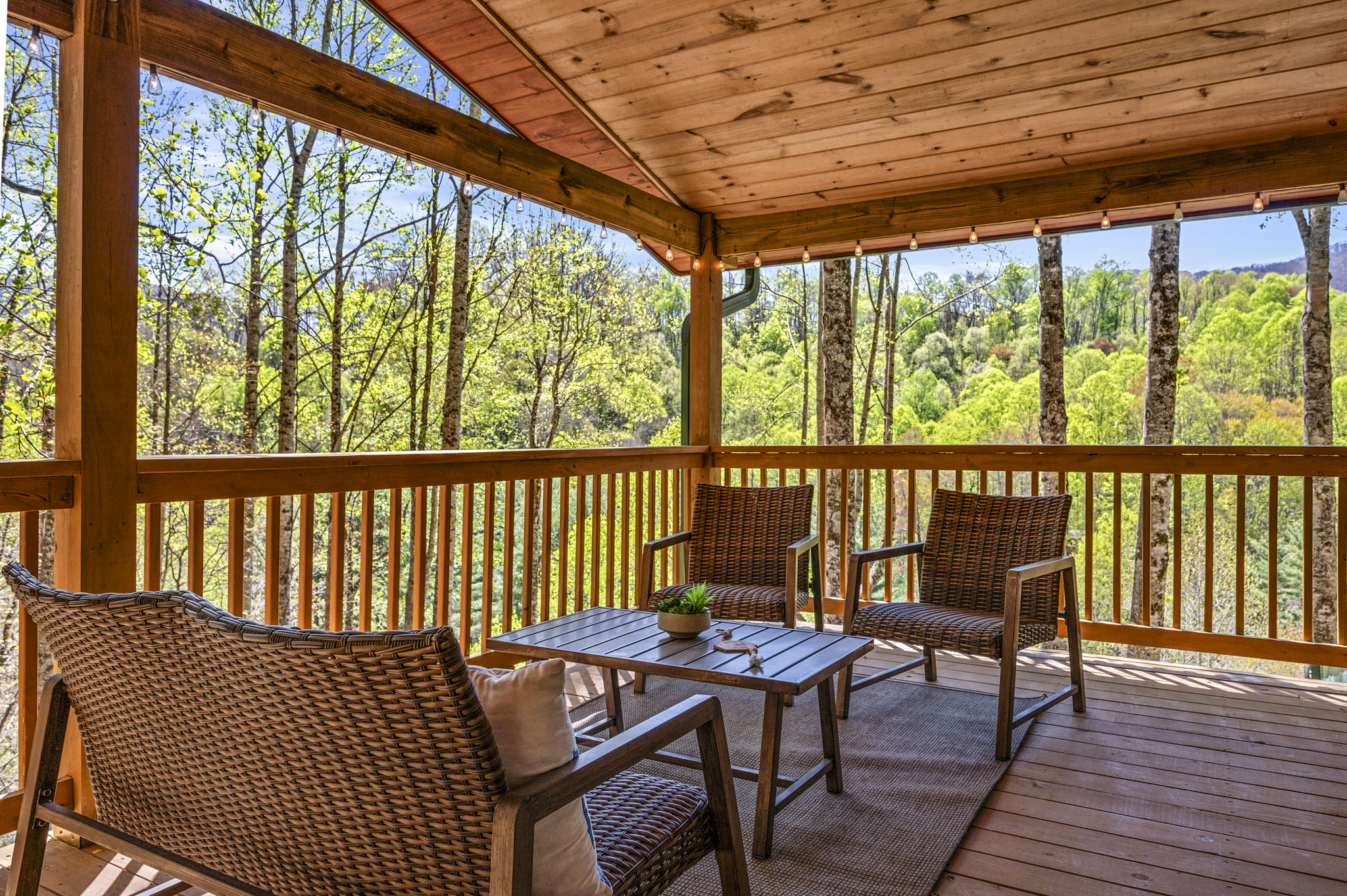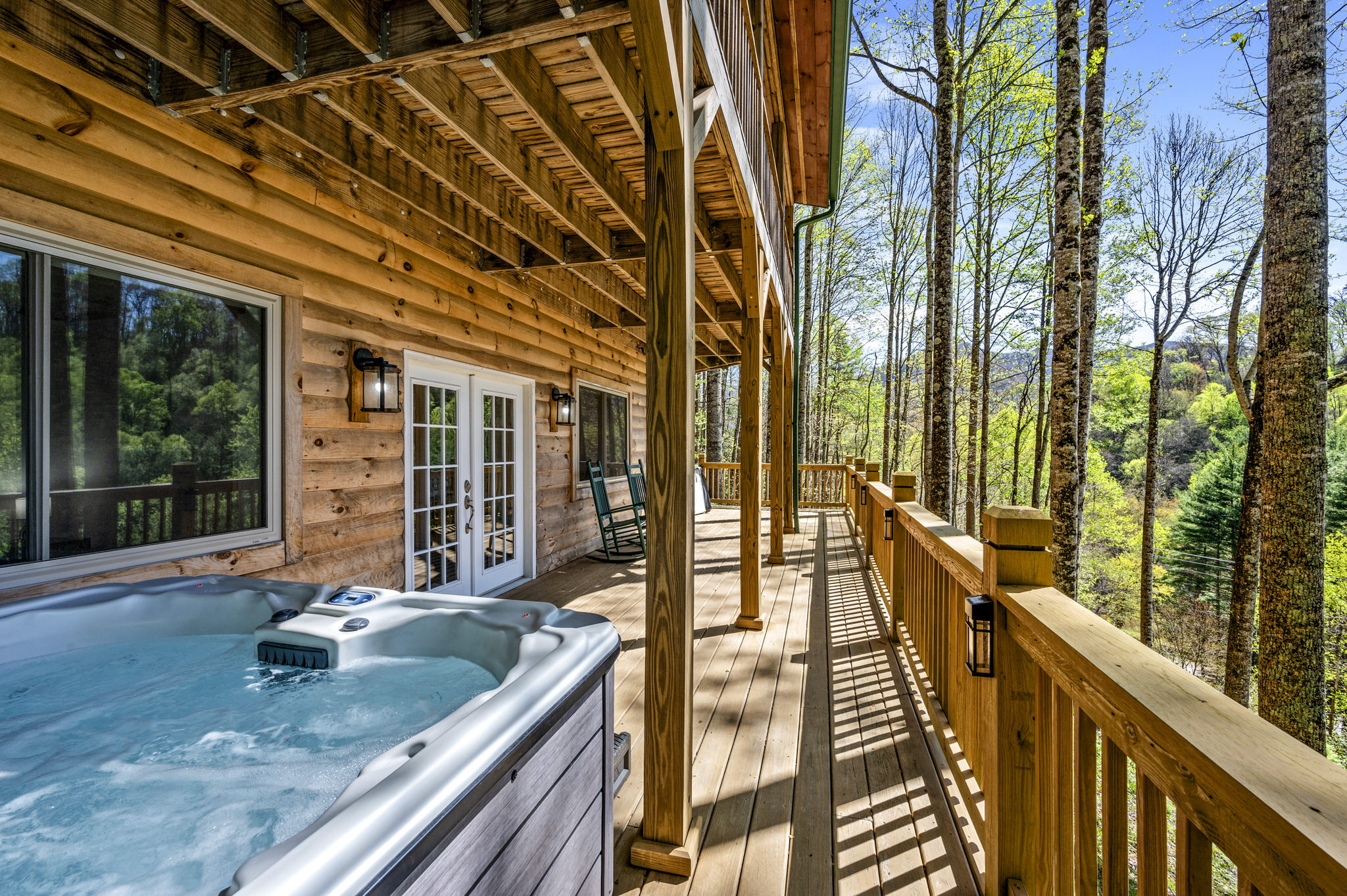 The outdoor living spaces truly elevate the experience. Multiple decks provide the perfect backdrop for enjoying fresh mountain air, whether you're dining, grilling, or simply unwinding. A private hot tub offers a peaceful place to relax, while the custom fire pit area invites memorable evenings under the stars.