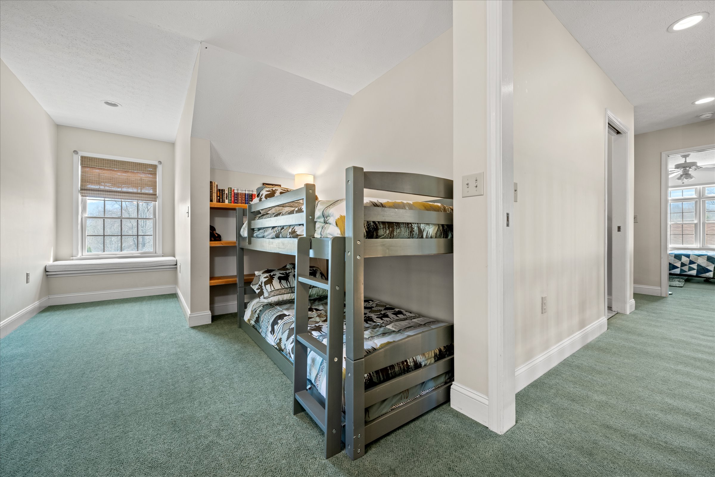 The lower level expands the living experience with a dedicated entertainment area, including a game room, additional living space, and direct access outside. This added flexibility enhances the home’s ability to accommodate larger groups while maintaining comfort and ease.